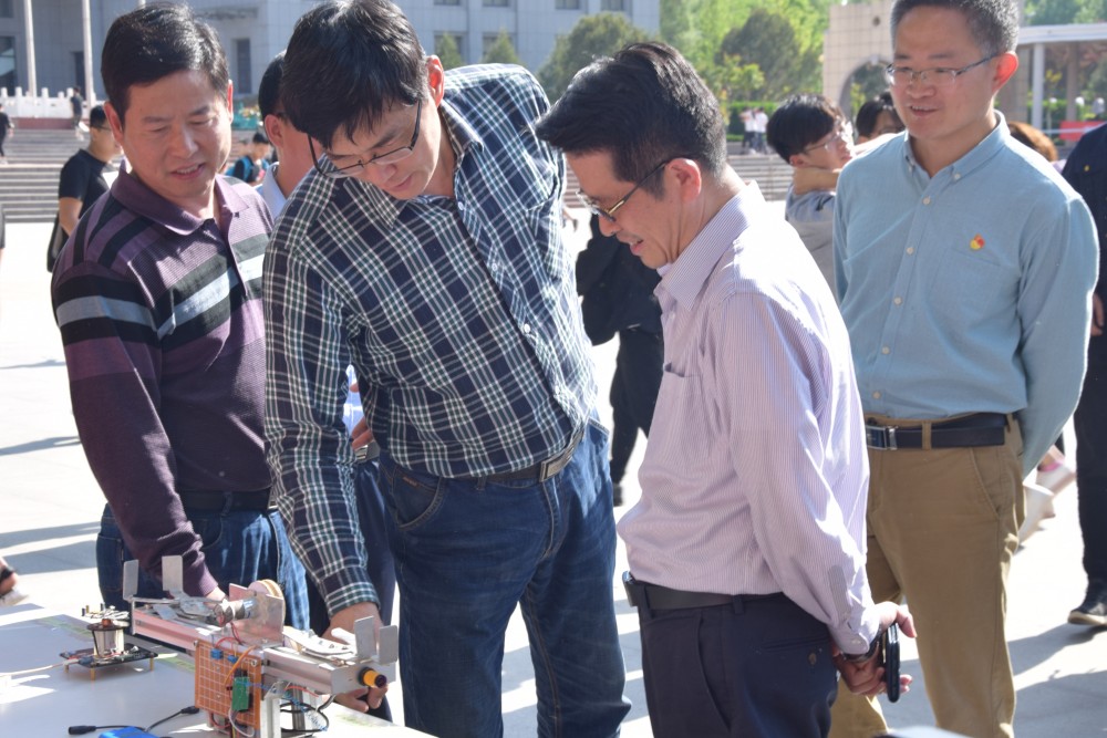 四、科創展覽,以教育創新與新時代同頻共振。進入中國特色社會主義新時代,培養時代需要的創新人才,以教育創新與新時代同頻共振,成為每一所學校、每一位教育工作者的重要責任和使命。活動周期間,學院舉辦了科技創新成果展示活動。展出的30余件成果,全部為老師指導制作和學生自主研發,其中既有在省級大賽中摘金奪銀的作品,也有首次亮相的新“玩意”。