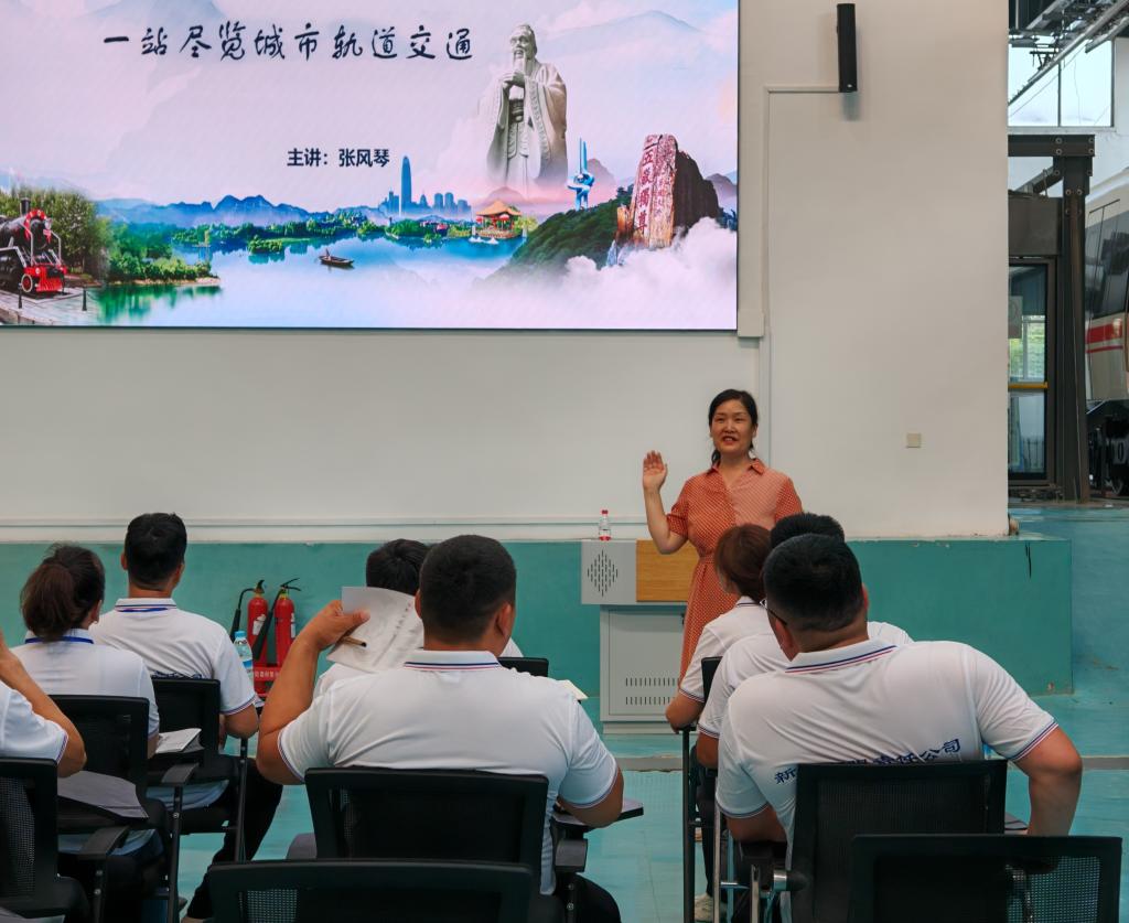 張(zhang)風琴老師(shi)從(cong)城市(shi)軌道(dao)交通(tong)軌道(dao)、車輛、運營、信(xin)號、供(gong)電等領域(yu)展(zhan)開講(jiang)解,使(shi)學(xue)員們對城市(shi)軌道(dao)交通(tong)形成整體認知,并(bing)帶領學(xue)員進入全自(zi)動無人駕駛(shi)列車,身臨其境感受城軌技術與(yu)文(wen)化。