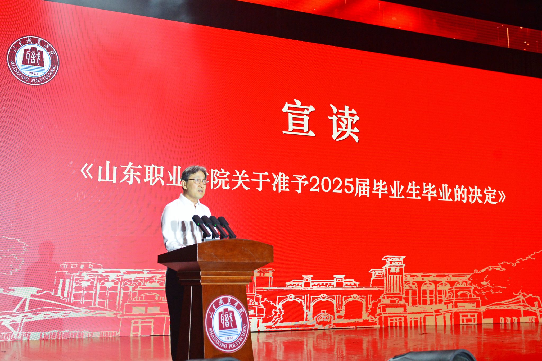 副院長王紹軍(jun)宣(xuan)讀了(le)《山(shan)東職業學(xue)(xue)院關于準(zhun)予2025屆畢業生畢業的決定(ding)》,熱(re)烈祝賀3673名學(xue)(xue)子圓滿(man)完成學(xue)(xue)業。