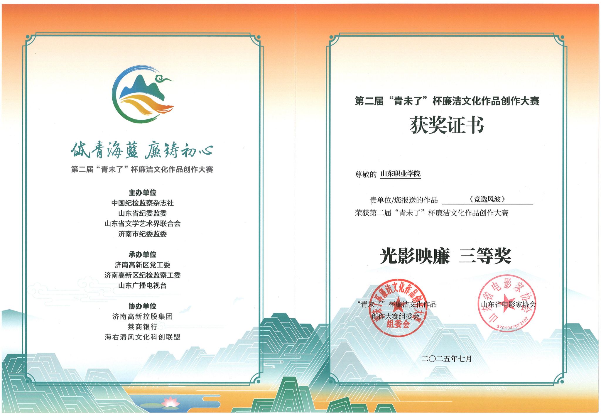 近日,第(di)二屆“青未(wei)了”杯廉潔(jie)文化作品創(chuang)作大賽評選結(jie)果揭曉,新一代信息技術(shu)產業學院制作的(de)AI創(chuang)意視(shi)頻《競選風波》獲(huo)得三等獎。