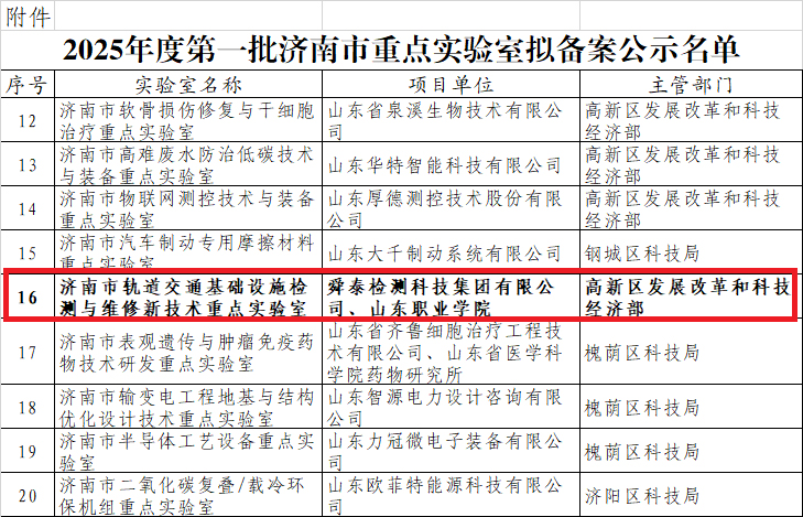 近日(ri),濟南(nan)市科(ke)學技術局公(gong)示2025年度市重(zhong)點(dian)實(shi)驗(yan)室(shi)擬(ni)備案名單,我(wo)校(xiao)烏拉(la)爾國際軌道交通(tong)(tong)學院與舜泰(tai)檢測科(ke)技集團(tuan)有限公(gong)司(si)聯合申(shen)報的“濟南(nan)市軌道交通(tong)(tong)基(ji)礎設施檢測與維修新技術重(zhong)點(dian)實(shi)驗(yan)室(shi)”成(cheng)功入選,標志(zhi)著學校(xiao)在(zai)服務區域產業創新、提(ti)升學科(ke)科(ke)研實(shi)力上邁出了(le)關鍵一步。