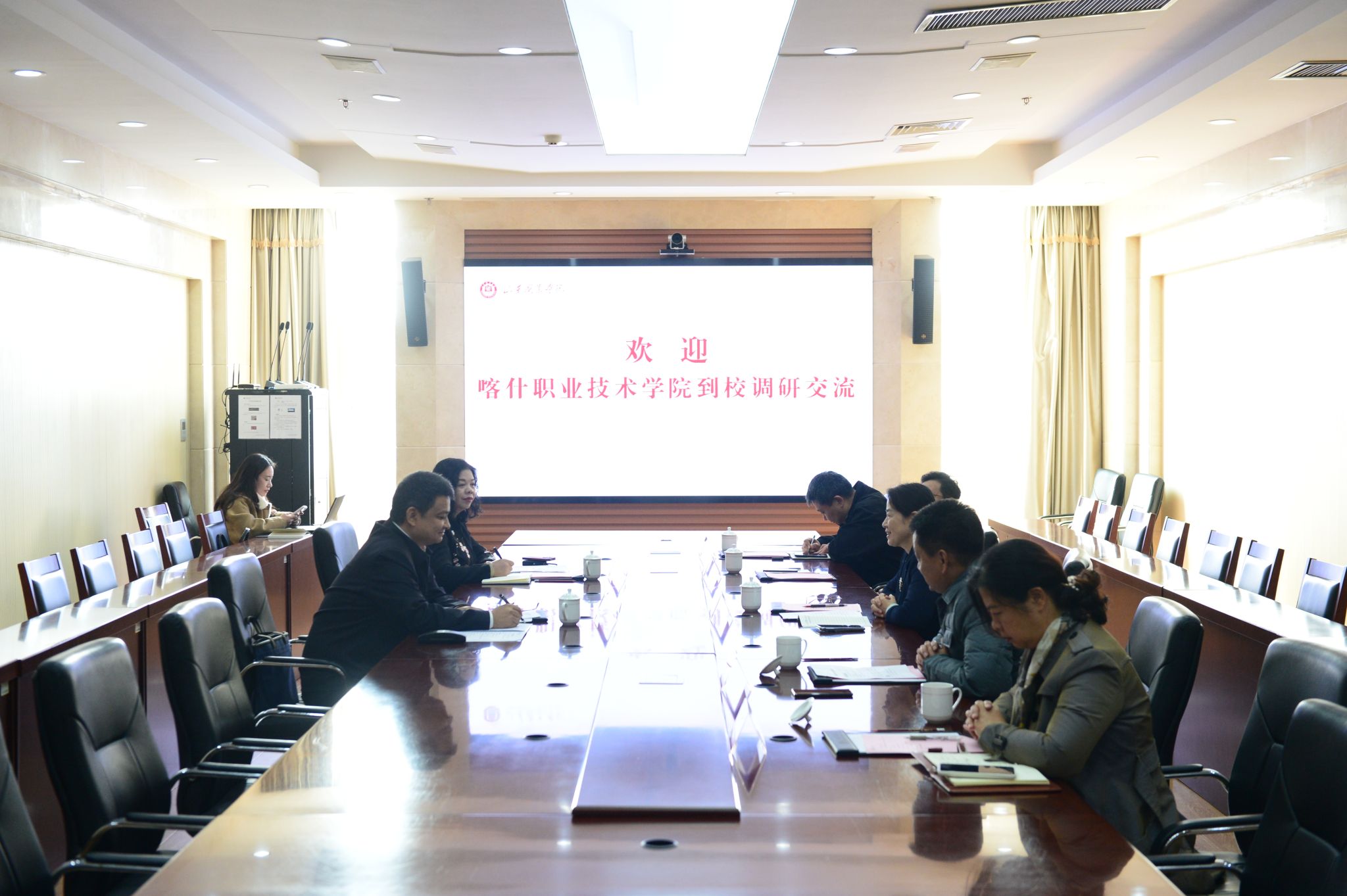 10月27日,喀什職業技術學院黨(dang)委(wei)副書(shu)記、院長(chang)亞森·艾(ai)力一行到訪我校(xiao)。學校(xiao)黨(dang)委(wei)書(shu)記趙鳳文,黨(dang)委(wei)委(wei)員、副院長(chang)李新華出席(xi)會(hui)見。