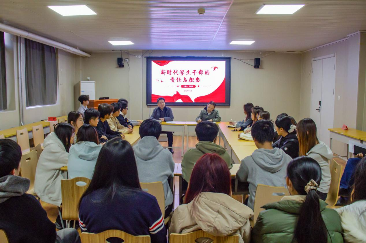 李新華圍(wei)繞“什么(me)是學(xue)生(sheng)(sheng)(sheng)干部(bu)”“學(xue)生(sheng)(sheng)(sheng)干部(bu)應具備的(de)素(su)質”“學(xue)生(sheng)(sheng)(sheng)干部(bu)應具備的(de)能力(li)”“學(xue)生(sheng)(sheng)(sheng)干部(bu)應具備的(de)思想”四個方面展開深入講(jiang)解。他(ta)指出,新時(shi)(shi)代學(xue)生(sheng)(sheng)(sheng)干部(bu)是扎根校園(yuan)、服(fu)務師生(sheng)(sheng)(sheng)的(de)青年骨(gu)干,是學(xue)校管理(li)(li)與學(xue)生(sheng)(sheng)(sheng)自(zi)我(wo)(wo)教育(yu)、自(zi)我(wo)(wo)管理(li)(li)、自(zi)我(wo)(wo)服(fu)務的(de)重要橋(qiao)梁。他(ta)強調,學(xue)生(sheng)(sheng)(sheng)干部(bu)要堅定共產主(zhu)義信仰(yang),厚植家(jia)國情(qing)懷,積(ji)極(ji)投身社會實踐,勇于擔當、敢于作(zuo)為,真正(zheng)做到“以同學(xue)為中心,甘當服(fu)務員(yuan)”,在關鍵時(shi)(shi)刻沖得(de)上、頂得(de)住、靠得(de)住。
