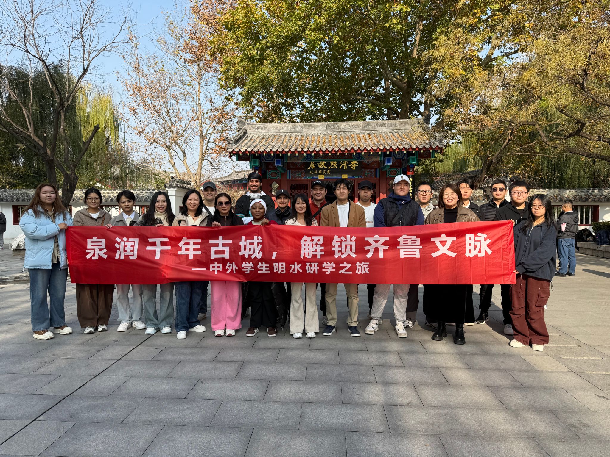 研學(xue)首站抵達被譽為“小泉(quan)城(cheng)”的(de)章丘明水(shui)(shui)古城(cheng)。中外學(xue)子漫(man)步青石(shi)巷陌,聆聽泉(quan)水(shui)(shui)潺潺,在百脈泉(quan)、梅花(hua)泉(quan)、墨泉(quan)等名(ming)泉(quan)旁駐(zhu)足,觀(guan)(guan)察(cha)泉(quan)水(shui)(shui)噴涌的(de)自然奇觀(guan)(guan)。師生們步入一(yi)代詞(ci)宗李清(qing)照的(de)故居,從其生平軼事(shi)與詩詞(ci)佳作中,切身感(gan)受宋風雅韻與濟(ji)南名(ming)士文化。這場(chang)行走的(de)課堂,讓(rang)大家對泉(quan)水(shui)(shui)滋(zi)養下的(de)齊魯文脈有了直觀(guan)(guan)而立體的(de)認(ren)知。
