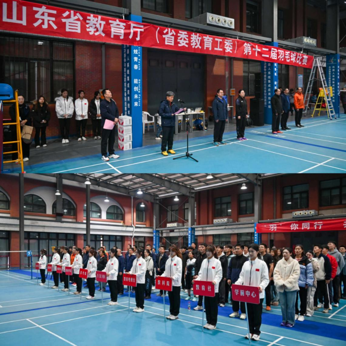 11月15日,山東省(sheng)教育廳(ting)(省(sheng)委(wei)教育工委(wei))第十(shi)二(er)屆(jie)羽毛球比賽在我(wo)校(xiao)陽(yang)光(guang)大廳(ting)舉辦。本次賽事共(gong)有9個單位、13支(zhi)代表隊、86名(ming)運(yun)動員(yuan)(yuan)參加。省(sheng)教育廳(ting)二(er)級巡視員(yuan)(yuan)李文生(sheng)、直屬機關黨委(wei)專職副(fu)書記(ji)丁(ding)健(jian),我(wo)校(xiao)黨委(wei)委(wei)員(yuan)(yuan)、副(fu)院長(chang)張(zhang)少飛等出席(xi)。開幕式(shi)由(you)丁(ding)健(jian)主持。
