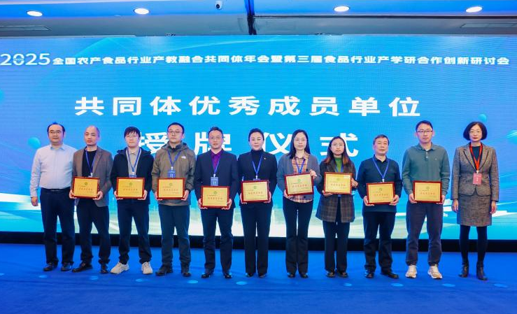 在優秀單位(wei)頒獎(jiang)環節(jie),我校生物工程學(xue)院憑借深度(du)(du)參(can)與共(gong)同體工作,參(can)與編制《2025年食(shi)品(pin)行(xing)業(ye)人才供(gong)需報(bao)告》,主導的(de)項目入(ru)選(xuan)全(quan)國農產食(shi)品(pin)行(xing)業(ye)產教(jiao)融合典型案(an)例等(deng)本(ben)年度(du)(du)對食(shi)品(pin)行(xing)業(ye)的(de)突出(chu)貢獻,被評為“共(gong)同體優秀成員單位(wei)”。