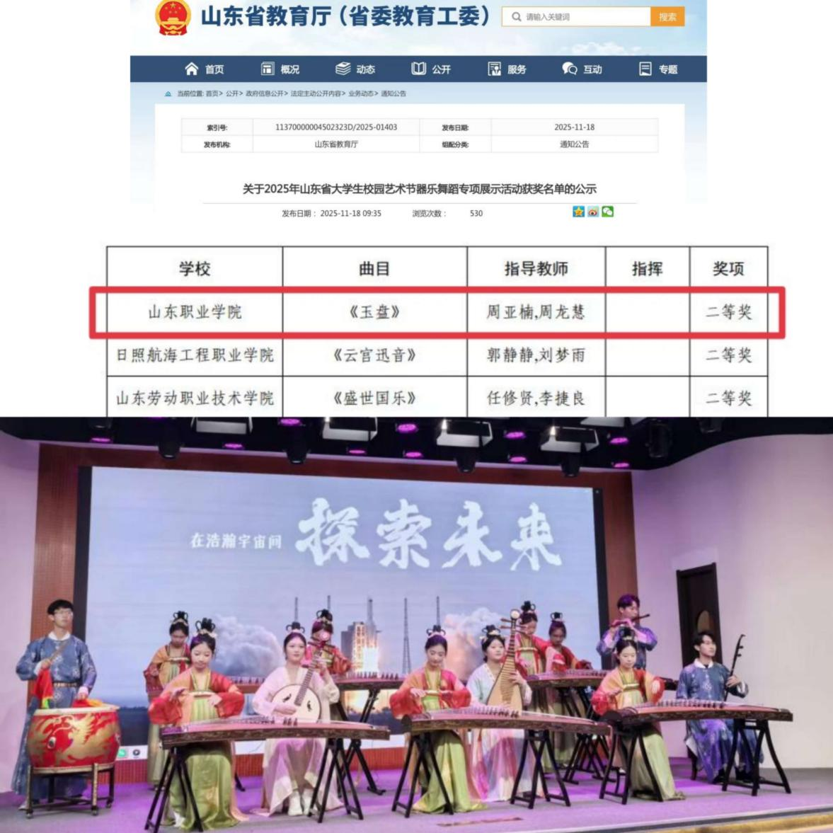在山東省(sheng)教育(yu)廳組織的山東省(sheng)大學(xue)生校(xiao)園藝術節器樂展示活動中,我校(xiao)體育(yu)美育(yu)教學(xue)部教師周亞楠、周龍慧指導(dao)的學(xue)生作(zuo)品《玉盤》榮獲省(sheng)級二等獎。