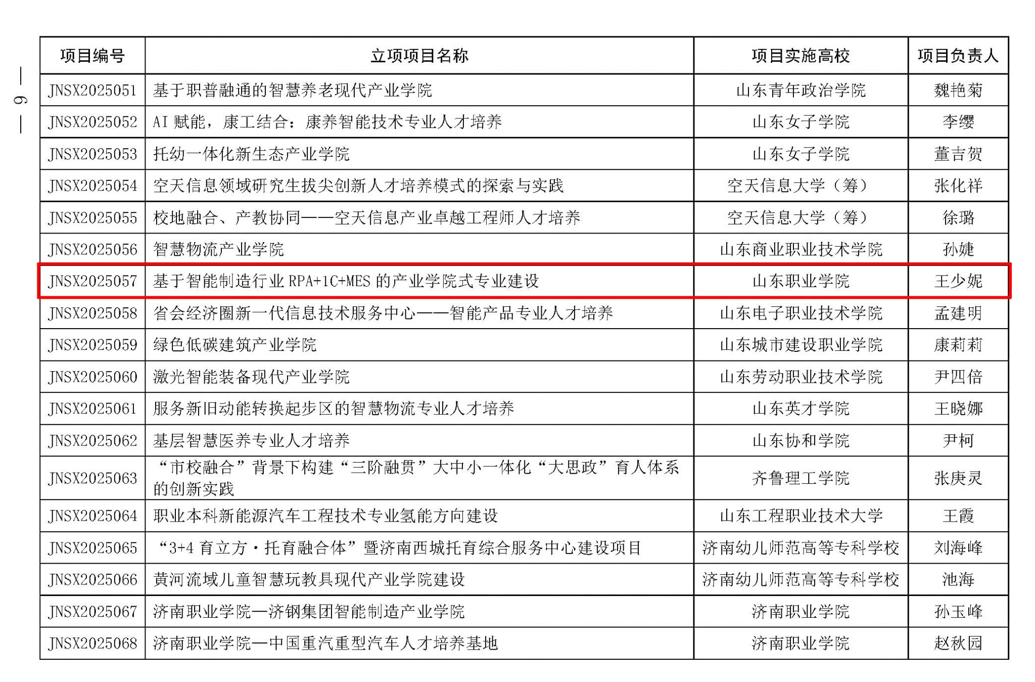 近日,濟南市(shi)教(jiao)育局(ju)公布(bu)2025年(nian)度市(shi)校(xiao)融合(he)發展戰略(lve)工程項(xiang)目(mu)立項(xiang)名單,我校(xiao)管理學(xue)(xue)院申報的“基于智(zhi)能(neng)制造(zao)行(xing)業(ye)(ye)RPA+1C+MES的產業(ye)(ye)學(xue)(xue)院式專業(ye)(ye)建設”項(xiang)目(mu)(項(xiang)目(mu)編號:JNSX2025057)成功入選評審(shen)類(lei)項(xiang)目(mu)。