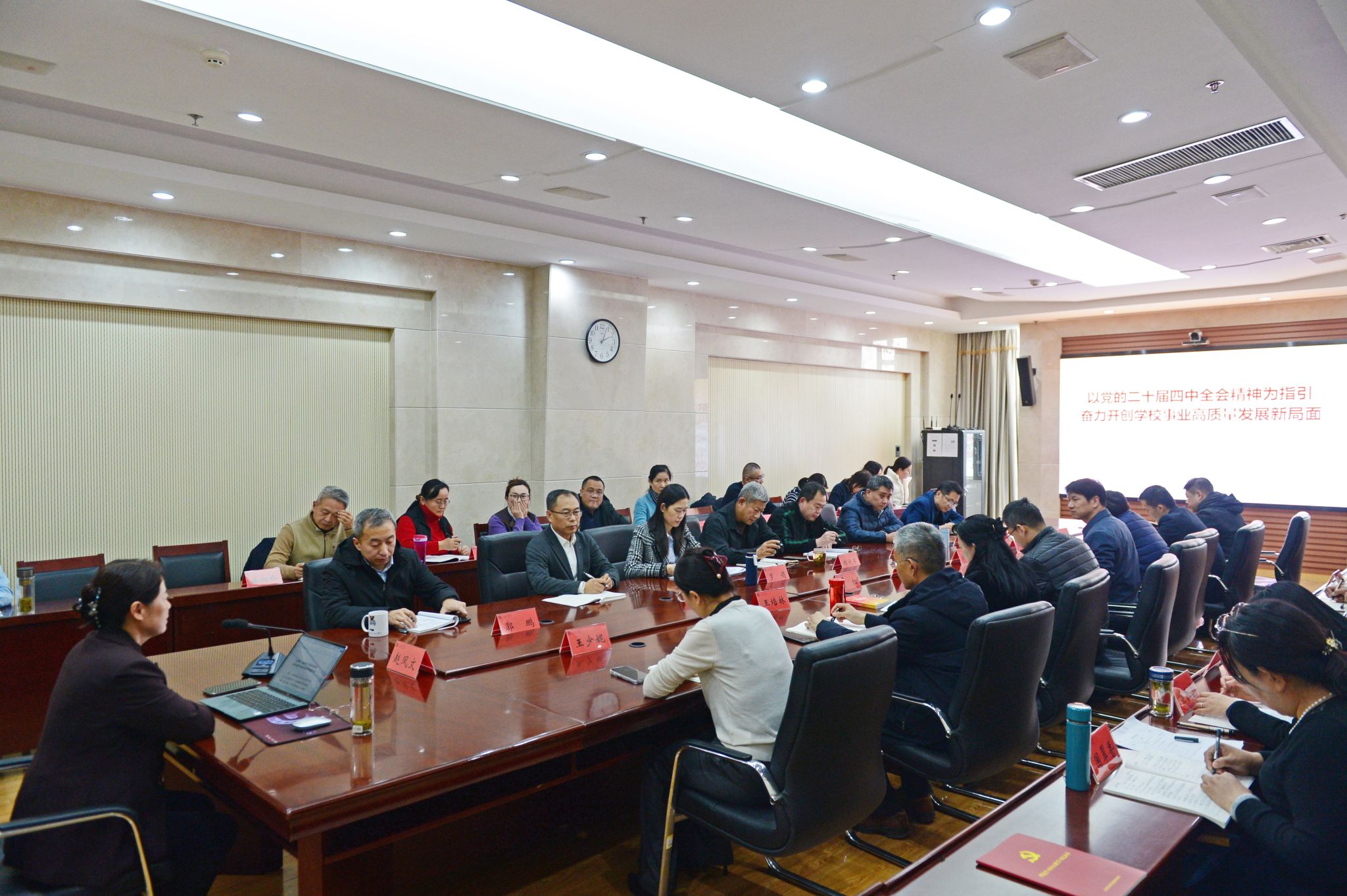 為(wei)推動黨(dang)(dang)的二(er)(er)十屆四(si)中(zhong)全(quan)會精神入腦入心、落(luo)地落(luo)實,12月(yue)23日,黨(dang)(dang)委書記趙鳳文以(yi)《以(yi)黨(dang)(dang)的二(er)(er)十屆四(si)中(zhong)全(quan)會精神為(wei)指引 奮力開(kai)創學校(xiao)事業高質(zhi)量發(fa)展新(xin)局面》為(wei)題,在701會議室(shi)宣講(jiang)黨(dang)(dang)的二(er)(er)十屆四(si)中(zhong)全(quan)會精神。