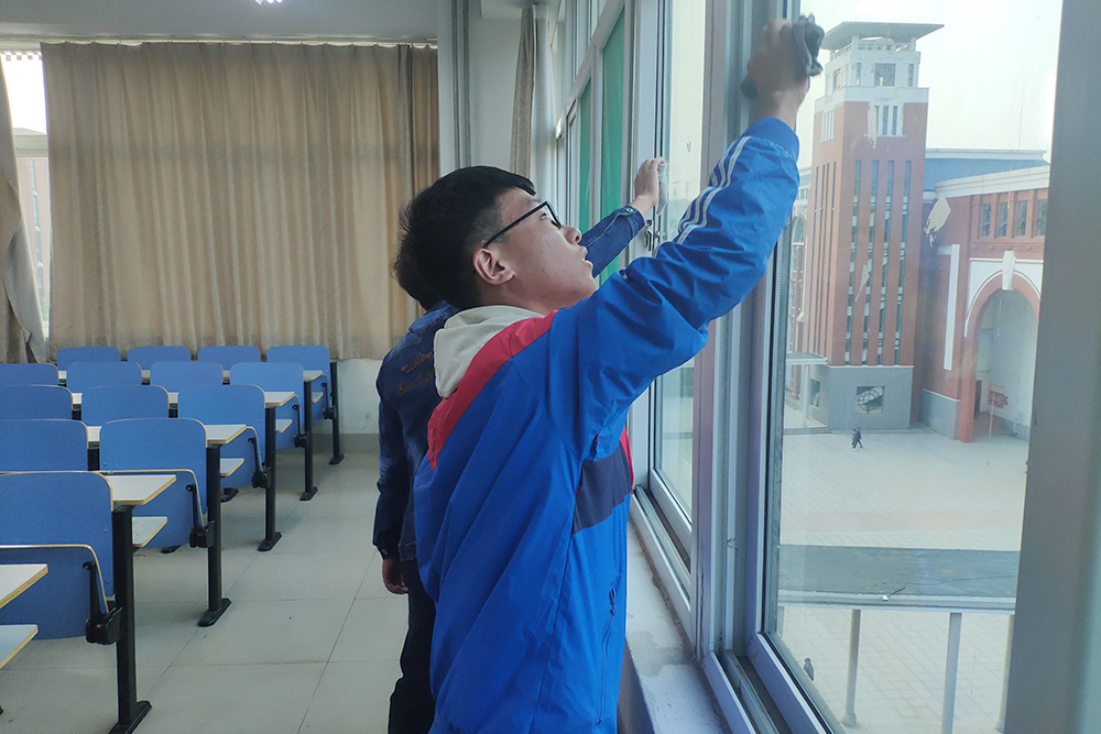 本(ben)次活動(dong)是對五號教學樓進行衛(wei)生清潔。活動(dong)中,同(tong)(tong)學們分(fen)工明確(que)、互相配合,認真清掃教室的(de)(de)每一(yi)(yi)個角落,充(chong)分(fen)發揚不怕(pa)臟、不怕(pa)累的(de)(de)精神。經過近一(yi)(yi)個小時的(de)(de)義(yi)務勞(lao)動(dong),教室內煥然一(yi)(yi)新。看著打掃干凈的(de)(de)教室,一(yi)(yi)位參加(jia)義(yi)務勞(lao)動(dong)同(tong)(tong)學表示(shi):作為一(yi)(yi)名大一(yi)(yi)新生,我們要(yao)樹立主人(ren)翁(weng)意識(shi)和尊重他人(ren)勞(lao)動(dong)的(de)(de)責任意識(shi),為創建整潔、文明、和諧的(de)(de)校園環境(jing)貢獻自己(ji)的(de)(de)力(li)量。