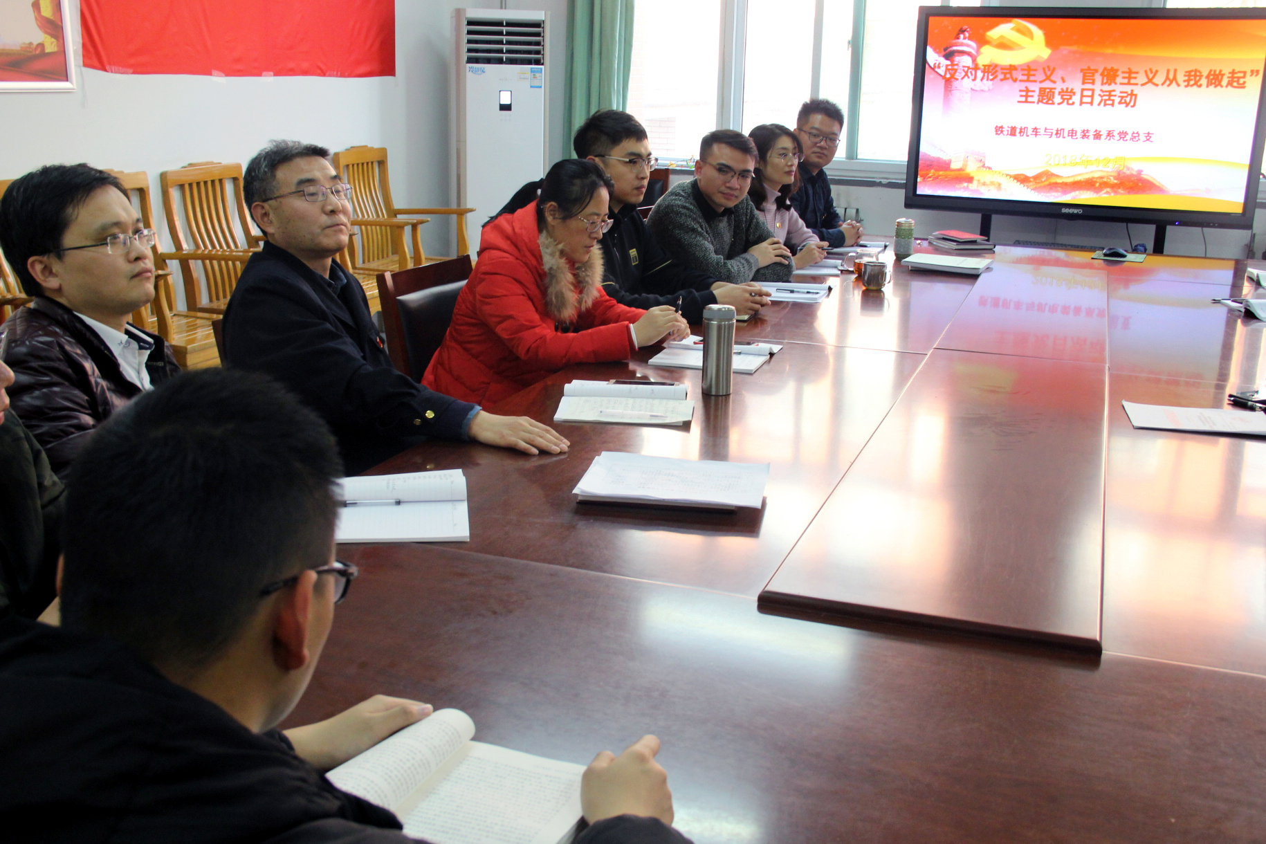 12月6日(ri),鐵(tie)道(dao)機車與機電裝(zhuang)備(bei)系開展“反對形式主義(yi)、官僚主義(yi),從我做起”主題黨日(ri)活(huo)動(dong),全系黨員參加了活(huo)動(dong)。