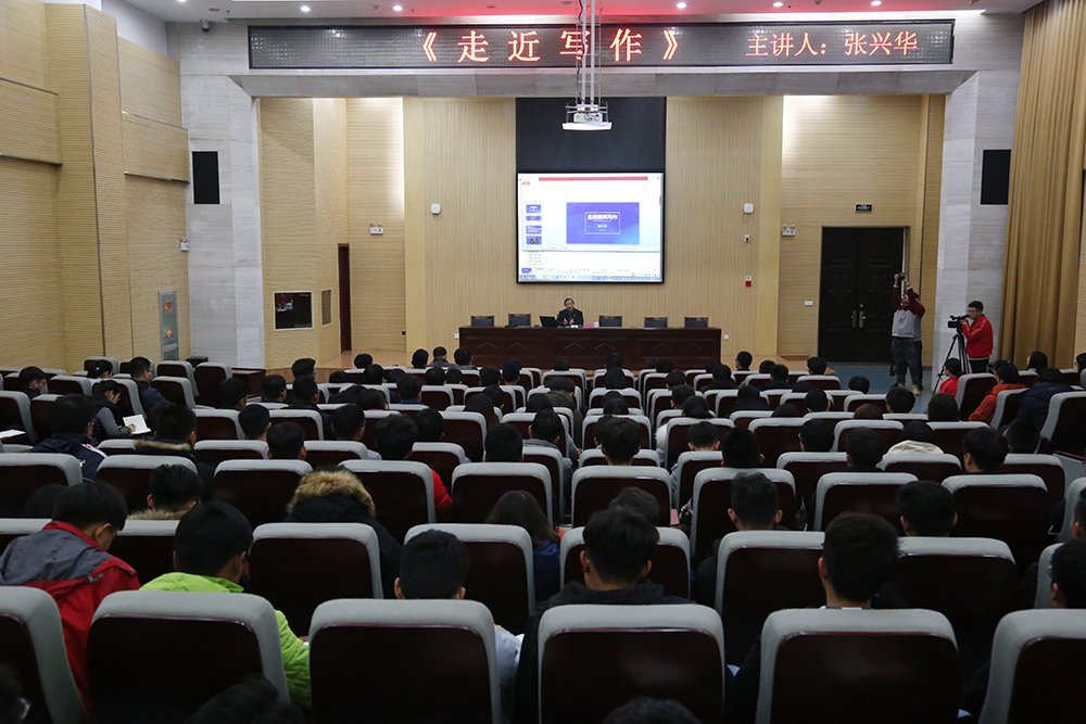 12月4日晚,我(wo)院舉辦(ban)“走(zou)近寫作(zuo)”專(zhuan)題講(jiang)座,基礎部(思政部)邀(yao)請到中國(guo)教育報山東(dong)記者(zhe)站副站長張興華研(yan)究員(yuan)到校與師生面對面交流寫作(zuo)心得(de),傳授寫作(zuo)技巧。學(xue)(xue)院黨委宣傳統戰部負責(ze)同(tong)志(zhi),大學(xue)(xue)生記者(zhe)團(tuan)、電視臺、廣播站成員(yuan)等200余(yu)人(ren)參(can)加講(jiang)座學(xue)(xue)習(xi)。