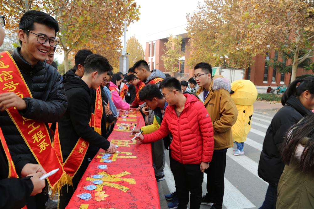 為進一(yi)步增加全校同(tong)學的(de)節(jie)水意識,11月29日,鐵道信(xin)號與信(xin)息工程(cheng)系舉辦了(le)節(jie)約用水簽名活(huo)動。 同(tong)學們在(zai)青年志(zhi)愿者(zhe)的(de)引(yin)導下,紛(fen)紛(fen)在(zai)橫幅上簽下自己的(de)姓(xing)名。