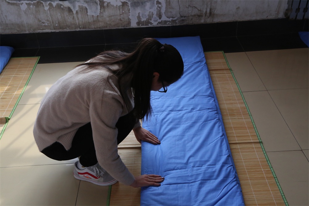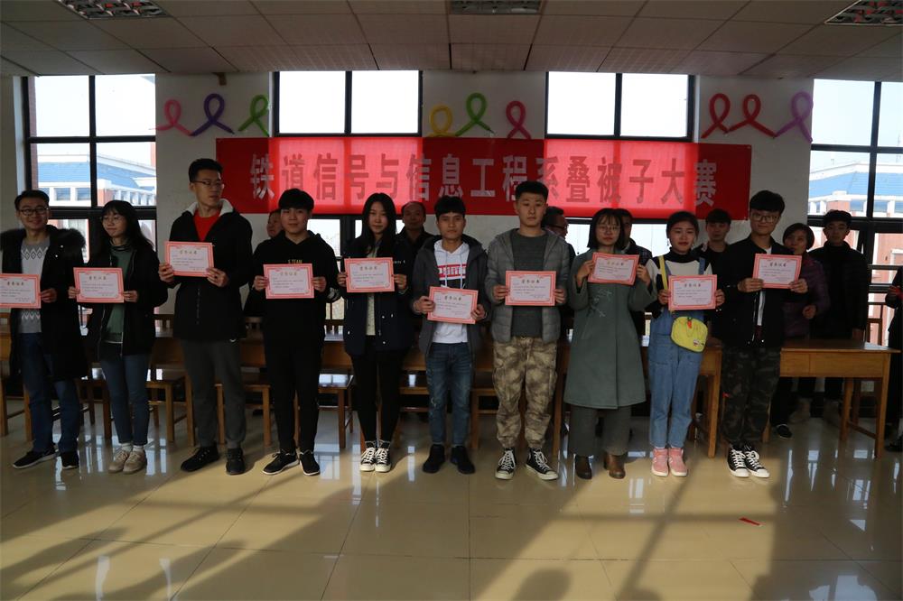 為(wei)提高同學們的(de)自律(lv)能力,展現當代(dai)大學生精神文明新風貌(mao),11月20日(ri),鐵道(dao)信號與信息工(gong)程系舉辦了(le)疊(die)被(bei)子(zi)大賽(sai)。黨總支書記郭亭、學工(gong)辦主任王笑冉以(yi)及輔導(dao)員老(lao)師觀看指導(dao)活動(dong)。比賽(sai)中,各位同學認真整(zheng)理(li)(li)被(bei)子(zi),不(bu)放過任何一(yi)(yi)(yi)-點(dian)皺(zhou)褶的(de)地方,將被(bei)子(zi)疊(die)的(de)方方正正,就像“豆腐塊”一(yi)(yi)(yi)樣。本次活動(dong)不(bu)僅充分調動(dong)了(le)全系同學整(zheng)理(li)(li)內務的(de)積(ji)極性(xing),也促使(shi)寢室文化建設向前(qian)邁進了(le)一(yi)(yi)(yi)大步(bu)。