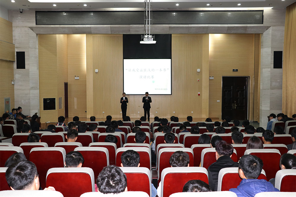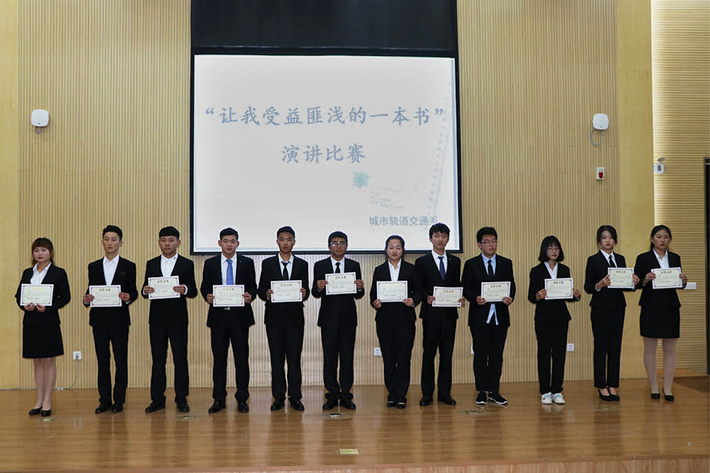 11月15日,城市(shi)軌道交通系舉辦了(le)“讓我受益匪淺的一本(ben)書(shu)(shu)”演講(jiang)比賽(sai)決賽(sai),學工辦主(zhu)任兼團總支書(shu)(shu)記張娜,輔導(dao)員叢樹勝、武(wu)文玉、孫梅玲(ling)出席活動并擔任評(ping)委。