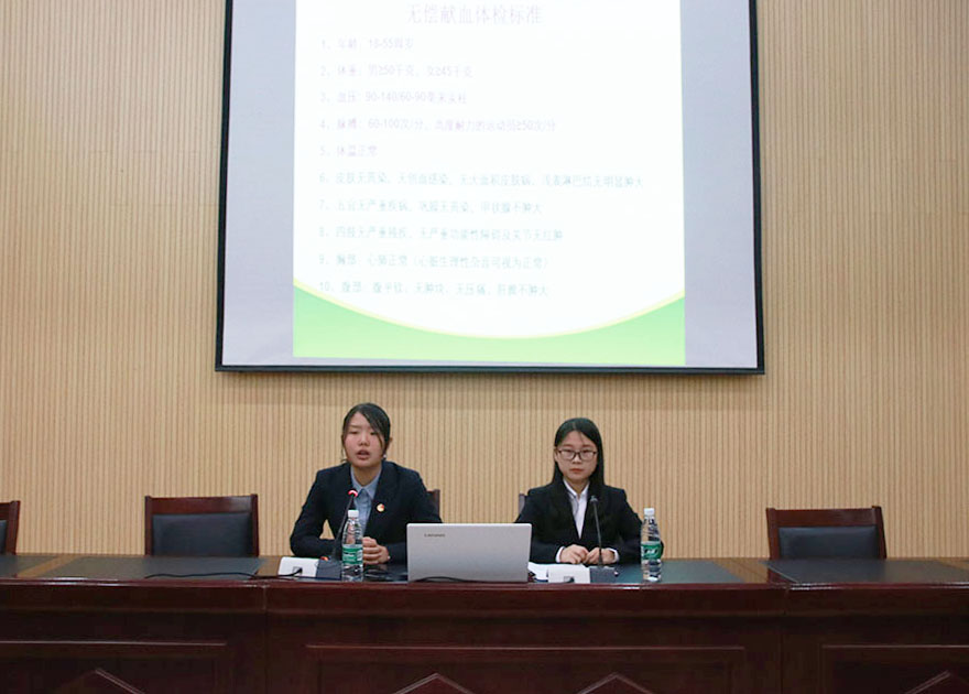 主講人(ren)王紅玉首(shou)(shou)先(xian)從什么是無(wu)償獻(xian)血(xue),到(dao)為什么實行無(wu)償獻(xian)血(xue),一(yi)步步引導大(da)(da)家認識(shi)獻(xian)血(xue)的(de)(de)(de)(de)重(zhong)要性。隨后(hou),她運用數據、表格的(de)(de)(de)(de)方(fang)式對(dui)比(bi)分析了各(ge)國(guo)家、地(di)區獻(xian)血(xue)的(de)(de)(de)(de)比(bi)例(li),并表示(shi)國(guo)家頒布《中華人(ren)民共和國(guo)獻(xian)血(xue)法》鼓勵在(zai)校學(xue)生率先(xian)獻(xian)血(xue),學(xue)院(yuan)也希(xi)望(wang)大(da)(da)家奉獻(xian)愛心(xin),把自己的(de)(de)(de)(de)大(da)(da)愛之情(qing),用到(dao)那些(xie)翹首(shou)(shou)期盼的(de)(de)(de)(de)病人(ren)身上(shang)。接下來(lai),她又強調了獻(xian)血(xue)的(de)(de)(de)(de)益處,她說:“獻(xian)血(xue)可以(yi)預防心(xin)腦(nao)血(xue)管(guan)疾病,刺激骨髓造血(xue)功能,預防癌癥的(de)(de)(de)(de)發生。”最(zui)后(hou),她又向大(da)(da)家介紹了獻(xian)血(xue)體檢得標準,具體的(de)(de)(de)(de)獻(xian)血(xue)流程及獻(xian)血(xue)后(hou)的(de)(de)(de)(de)注意事項等。