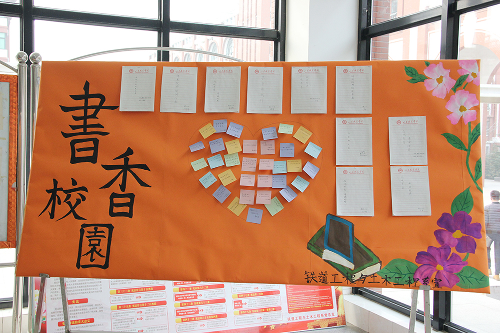 近日(ri),鐵道工程與(yu)土木(mu)工程系舉辦了“書香(xiang)(xiang)校(xiao)園”征文比賽(sai),同學們積極響應,用(yong)手中靈動(dong)的(de)(de)筆(bi)撰寫(xie)著自己對“書香(xiang)(xiang)校(xiao)園”的(de)(de)獨特見解。