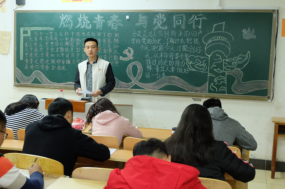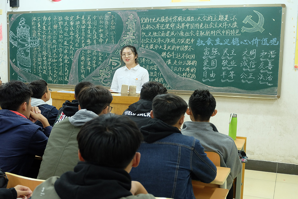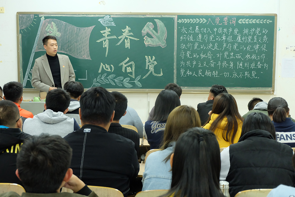 學生(sheng)黨(dang)支部(bu)的(de)(de)(de)(de)黨(dang)員(yuan)、入(ru)黨(dang)積極分子(zi)深入(ru)各班(ban)級,介紹黨(dang)史知識、暢談(tan)個人(ren)的(de)(de)(de)(de)經歷體會,勉勵大家樹(shu)立(li)遠大理(li)想(xiang)和堅定(ding)政(zheng)治信仰(yang)。新(xin)生(sheng)們認真聽講(jiang),仔細記錄,踴(yong)躍(yue)發言。學生(sheng)黨(dang)員(yuan)韓笑簡述了(le)(le)中國共產(chan)黨(dang)九十(shi)多年(nian)的(de)(de)(de)(de)奮斗歷程(cheng),他表示雖然有過坎坷(ke)、有過曲折,但我(wo)(wo)們黨(dang)都(dou)經受(shou)住了(le)(le)嚴峻的(de)(de)(de)(de)考驗,實(shi)踐證(zheng)明(ming),中國共產(chan)黨(dang)是一個偉大的(de)(de)(de)(de)、光榮的(de)(de)(de)(de)、正確的(de)(de)(de)(de)黨(dang)。入(ru)黨(dang)積極分子(zi)鞠迎強談(tan)到(dao)實(shi)現(xian)中華民(min)族偉大復興中國夢,他認為看似(si)高(gao)(gao)遠,實(shi)在當下,它融入(ru)到(dao)我(wo)(wo)們每一天的(de)(de)(de)(de)工作、學習、生(sheng)活(huo)之(zhi)中。作為新(xin)時代青(qing)年(nian)就要緊(jin)跟黨(dang)中央,在奮斗中實(shi)現(xian)青(qing)春夢想(xiang)。入(ru)黨(dang)積極分子(zi)李秉(bing)昌表示,作為學生(sheng)干部(bu)要嚴格工作標準(zhun),不斷地提(ti)高(gao)(gao)政(zheng)治素質,積極踐行社會主(zhu)義核心(xin)價(jia)值(zhi)觀(guan)。