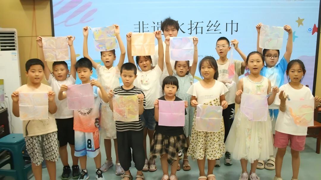 水(shui)拓(tuo)成(cheng)藝(yi)(yi)。在(zai)水(shui)拓(tuo)畫(hua)(hua)課(ke)堂,團隊成(cheng)員(yuan)詳細介紹了(le)水(shui)拓(tuo)畫(hua)(hua)這(zhe)一(yi)古(gu)老非遺(yi)技藝(yi)(yi)的(de)歷史淵源(yuan)與獨特(te)魅力,讓孩(hai)子們(men)對水(shui)拓(tuo)畫(hua)(hua)技藝(yi)(yi)與現代絲(si)(si)巾(jin)工藝(yi)(yi)有了(le)初步(bu)印象。隊員(yuan)們(men)結合唐代“墨池浮紋”技藝(yi)(yi)源(yuan)流,引導孩(hai)子滴彩入水(shui)、勾繪波紋。孩(hai)子們(men)小心翼翼地將絲(si)(si)巾(jin)覆蓋水(shui)面,輕提慢拉(la)間,流動的(de)水(shui)拓(tuo)紋樣便(bian)永久定格在(zai)絲(si)(si)織物上。絲(si)(si)巾(jin)輕覆水(shui)面剎那(nei),流動的(de)敦煌色系與青花紋樣永久定格于方寸之間。孩(hai)子們(men)高舉絲(si)(si)巾(jin)歡呼:“我把銀河披在(zai)身上!”非遺(yi)技藝(yi)(yi)在(zai)互動中完成(cheng)從古(gu)法到(dao)潮(chao)品的(de)蛻(tui)變。
