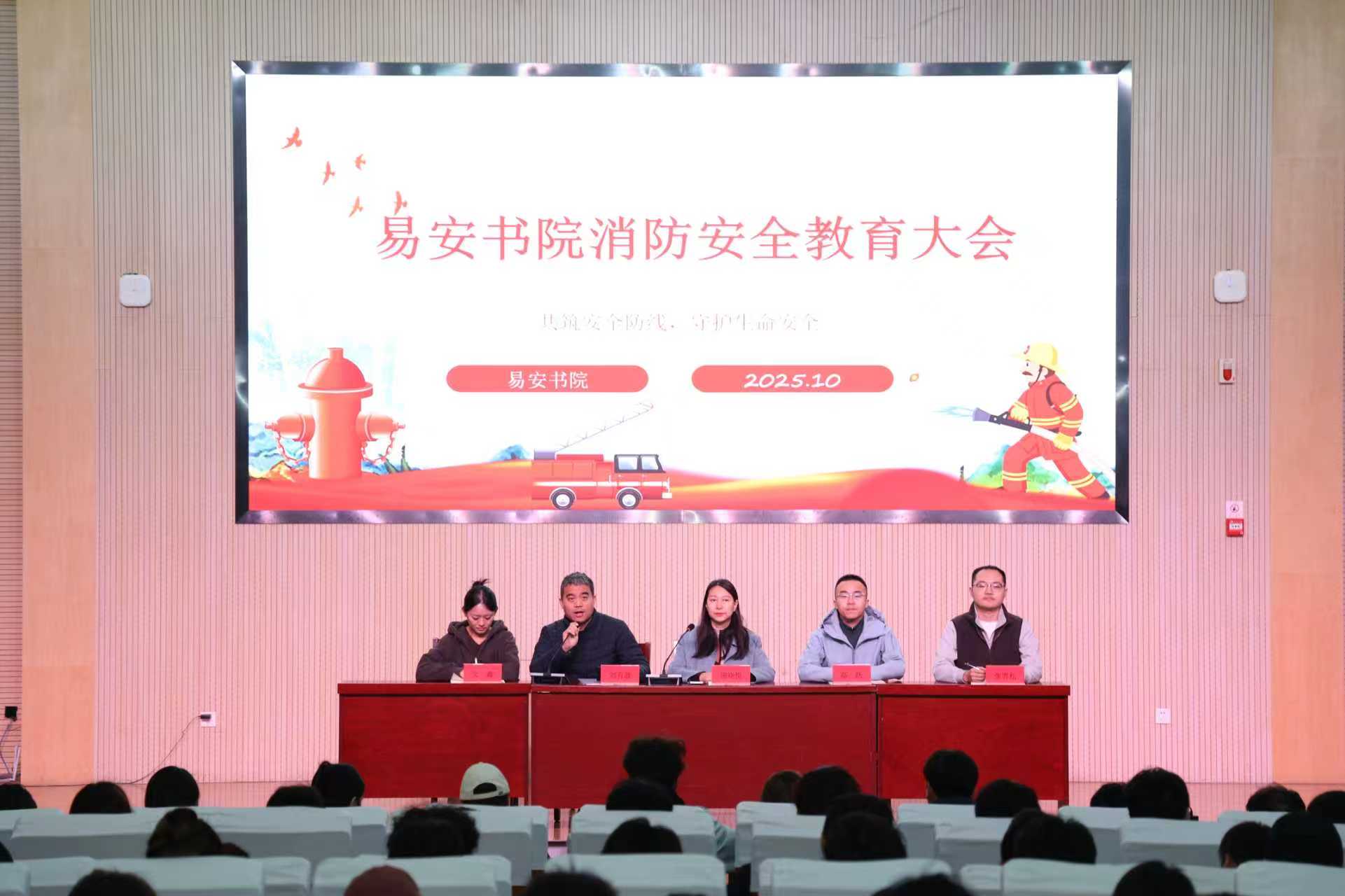為切實(shi)提升學(xue)生的消(xiao)防(fang)安(an)全(quan)意識與應急處置(zhi)能力,扎(zha)實(shi)推進校園安(an)全(quan)管理(li)工作,10月27日(ri),易安(an)書(shu)院在(zai)東報告廳舉(ju)行消(xiao)防(fang)安(an)全(quan)教育大(da)會(hui)。易安(an)書(shu)院黨總支書(shu)記、院長鈕曉悅(yue)出席大(da)會(hui),各年級輔(fu)導員、書(shu)院全(quan)體學(xue)生干部及(ji)宿舍(she)長參加(jia)大(da)會(hui)。