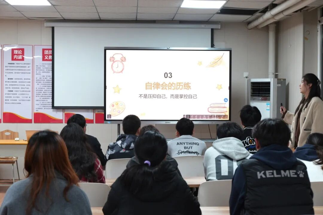 針(zhen)對同(tong)(tong)學們關注的“學習與(yu)部(bu)門(men)沖(chong)突”問題,侯振佳(jia)建(jian)議同(tong)(tong)學們使(shi)用“明確優(you)先(xian)級(ji),制定計劃,及時復(fu)盤(pan)”的方(fang)法(fa),她以自(zi)身(shen)為例,介紹了如(ru)何通(tong)過提高學習效率(lv),減(jian)少課后(hou)(hou)知識復(fu)盤(pan)時間,從(cong)而騰(teng)出(chu)更多精力投入部(bu)門(men)工作(zuo)。最后(hou)(hou),她鼓(gu)勵同(tong)(tong)學們銳(rui)意進(jin)取,正(zheng)視壓(ya)力,用奮斗(dou)開(kai)辟屬于(yu)自(zi)己的道路。