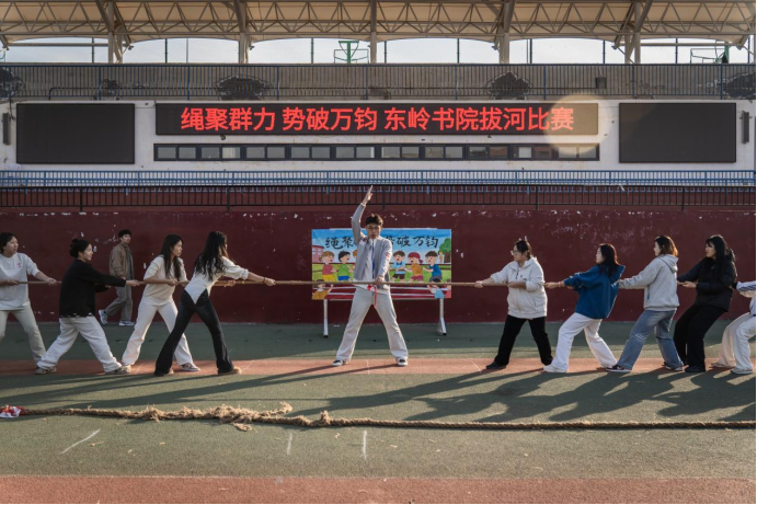 為豐富(fu)校園文化生(sheng)活,增強同學(xue)們的(de)團隊協作(zuo)意識(shi),11月21日,東(dong)嶺書院在東(dong)操場舉辦主題(ti)為“繩聚群力,勢破萬鈞”的(de)拔河比賽,2024級、2025級學(xue)生(sheng)參加。