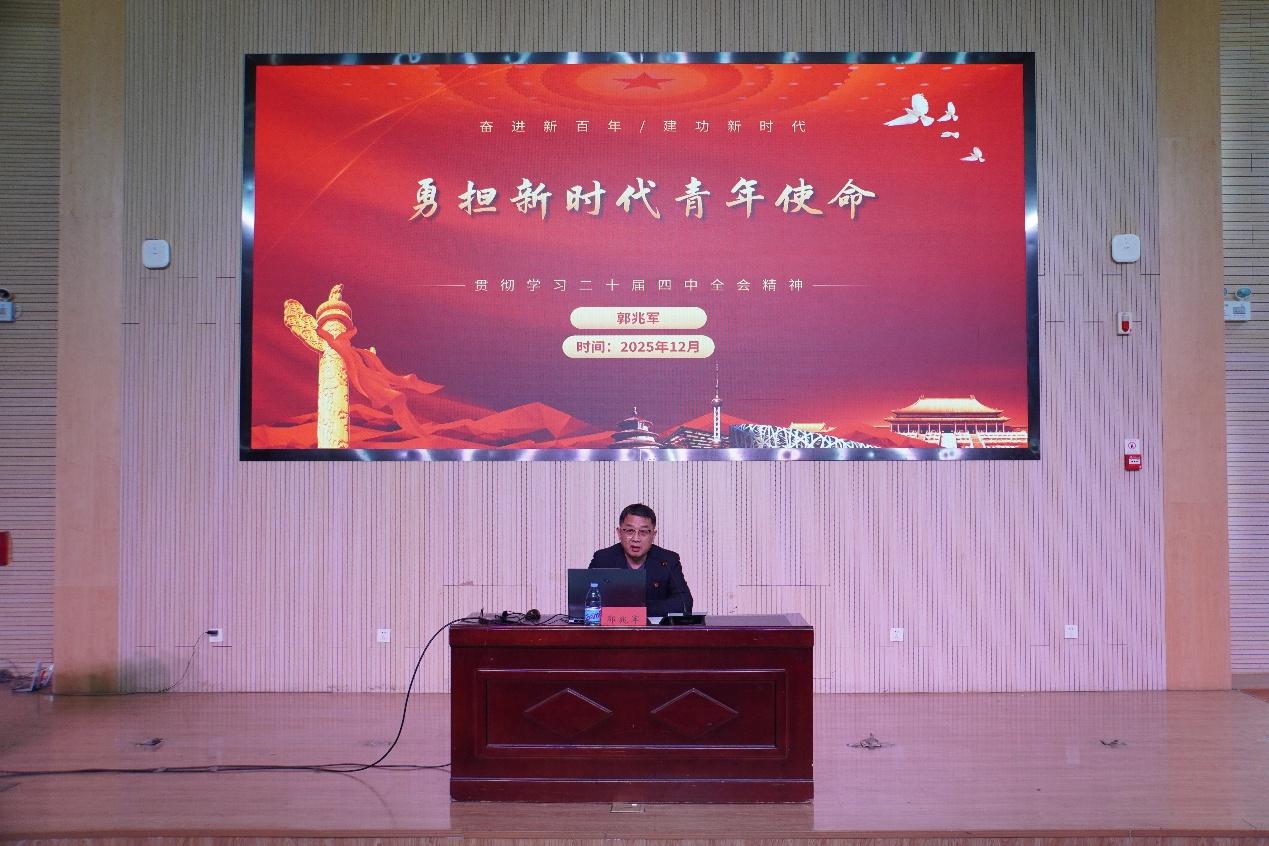 開班儀式(shi)上,郭(guo)兆軍(jun)以“勇(yong)擔新(xin)時(shi)(shi)代青(qing)年使命”為(wei)題(ti)為(wei)全體學(xue)員講授開班第(di)一課,引導學(xue)員們深刻理解馬克思主義的(de)真理力量,明確新(xin)時(shi)(shi)代青(qing)年的(de)責任與擔當。
