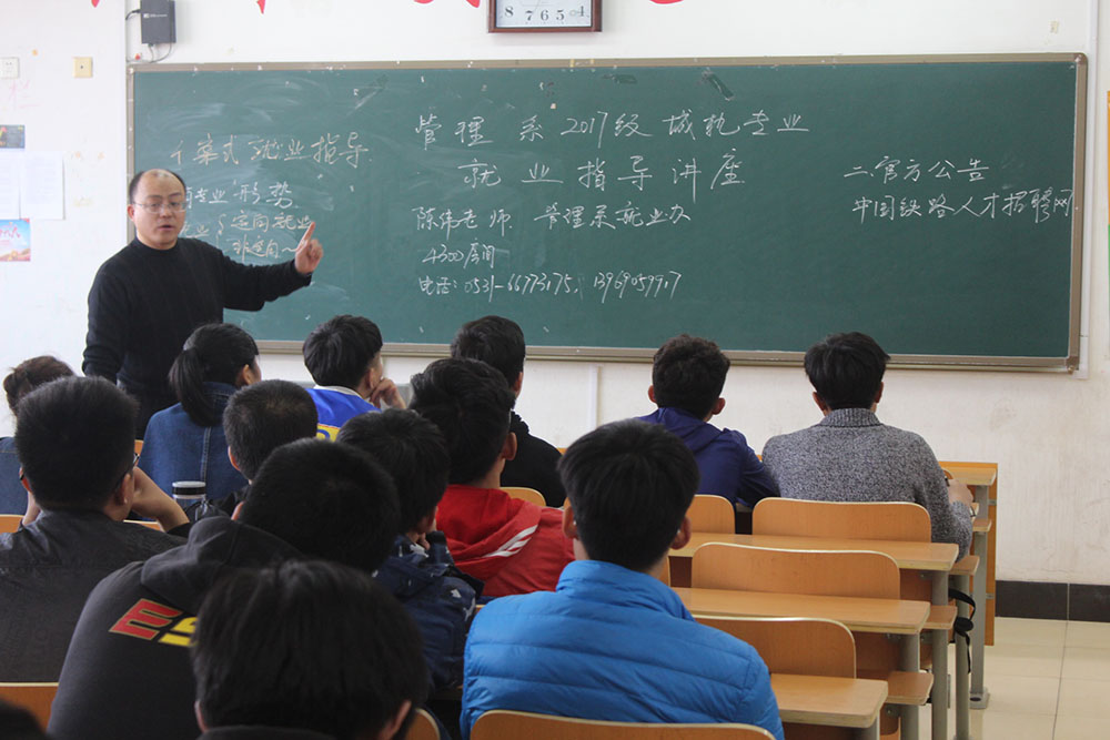 講座中,陳(chen)老(lao)師針對(dui)(dui)軌道交(jiao)通運營類專(zhuan)業(ye)(ye)(ye)(ye)當前(qian)的就(jiu)(jiu)業(ye)(ye)(ye)(ye)形(xing)勢,通過與(yu)其他同類院校比(bi)較(jiao)進(jin)行(xing)橫向(xiang)分析(xi),與(yu)本校往屆畢業(ye)(ye)(ye)(ye)生(sheng)(sheng)比(bi)較(jiao)進(jin)行(xing)縱向(xiang)分析(xi),闡述了定向(xiang)就(jiu)(jiu)業(ye)(ye)(ye)(ye)和非定向(xiang)就(jiu)(jiu)業(ye)(ye)(ye)(ye)的優缺點。建議同學(xue)們針對(dui)(dui)自己的具體情況(kuang),選擇(ze)最(zui)有利的就(jiu)(jiu)業(ye)(ye)(ye)(ye)形(xing)式。陳(chen)老(lao)師指(zhi)出(chu),同學(xue)們應該從大學(xue)一年(nian)級就(jiu)(jiu)樹(shu)立(li)正確的擇(ze)業(ye)(ye)(ye)(ye)觀念,合(he)理進(jin)行(xing)職業(ye)(ye)(ye)(ye)生(sheng)(sheng)涯規劃(hua)。期間,陳(chen)老(lao)師還(huan)從正式工(gong)與(yu)臨(lin)時工(gong)身份、薪資待遇、城(cheng)市軌道交(jiao)通發(fa)展(zhan)趨(qu)勢、鐵路局招聘城(cheng)軌專(zhuan)業(ye)(ye)(ye)(ye)學(xue)生(sheng)(sheng)的數(shu)據等方(fang)面分析(xi)說明。他指(zhi)出(chu),選擇(ze)定向(xiang)就(jiu)(jiu)業(ye)(ye)(ye)(ye),參與(yu)“訂單班”學(xue)習,既(ji)能明晰(xi)自己的發(fa)展(zhan)方(fang)向(xiang),又能以企業(ye)(ye)(ye)(ye)正式員工(gong)的身份安心(xin)工(gong)作生(sheng)(sheng)活(huo),對(dui)(dui)企業(ye)(ye)(ye)(ye)和學(xue)生(sheng)(sheng)是“雙贏格(ge)局”。最(zui)后,系團總支書記張(zhang)錦要(yao)求同學(xue)們要(yao)認真分析(xi)自身特點,做(zuo)好職業(ye)(ye)(ye)(ye)生(sheng)(sheng)涯規劃(hua),為軌道交(jiao)通事業(ye)(ye)(ye)(ye)的發(fa)展(zhan)貢獻力量(liang)。